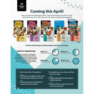 - Puppy Food it's best to start with the same food we were feeding (which is Members Mark Puppy Formula Dry Food; equivalent to Blue Buffalo Life Protection Puppy Formula).